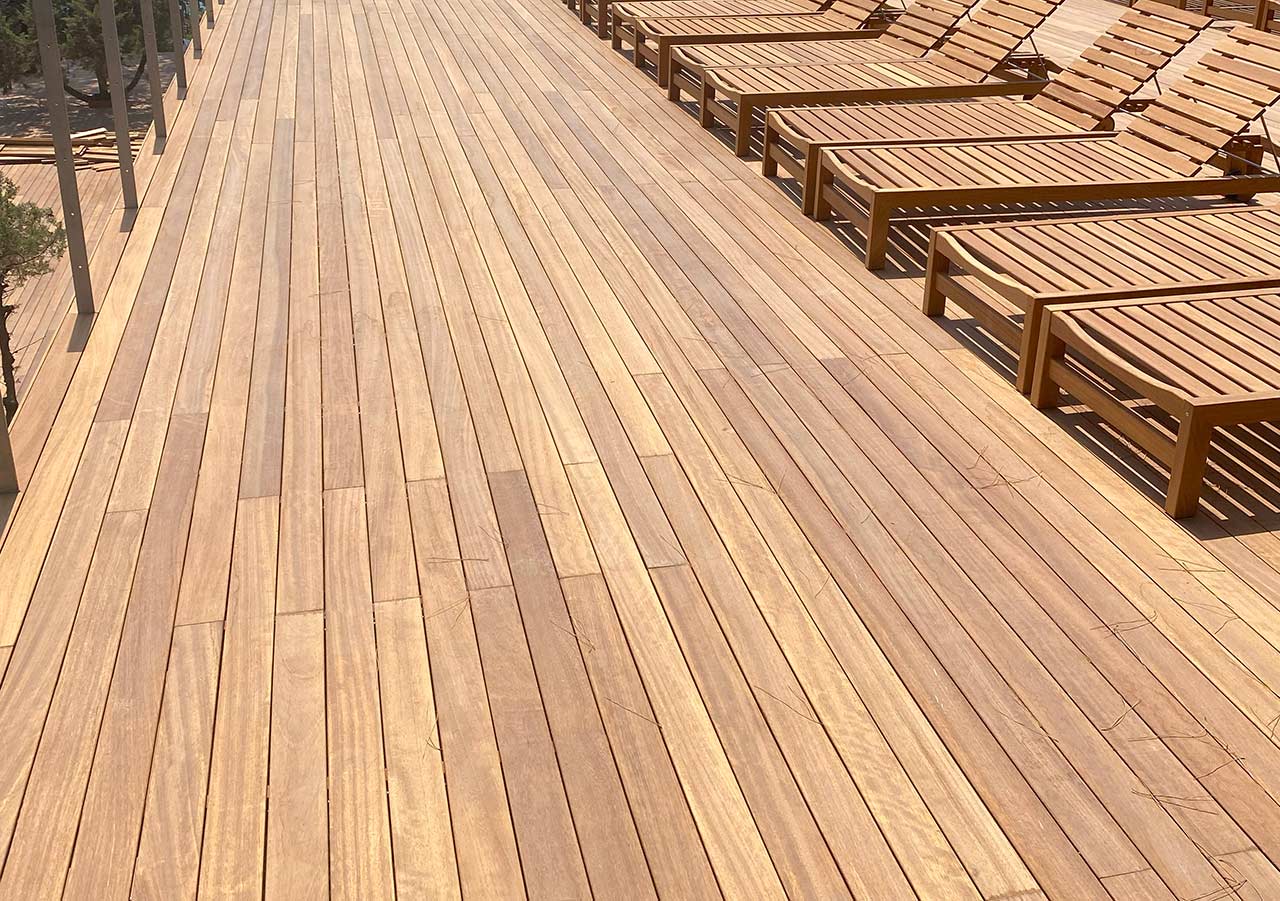 In our facility, we enhance the Iroko tree by adding aesthetic values, transforming it into Iroko deckings. With every detail, our Iroko deckings bring the beauty of nature to your living spaces, providing seamless use for many years with elegance and quality.